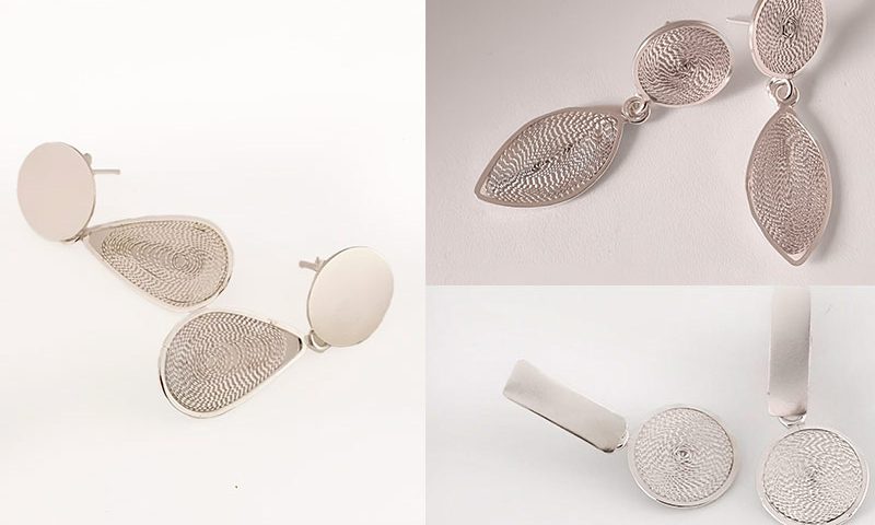 La filigrana en joyería es una técnica que consiste en la utilización de finísimos hilos de metal (plata en este caso), los que se trabajan en distintos procesos para rellenar formas elaboradas por el orfebre. Es un proceso muy fino y delicado que requiere mucho trabajo y precisión.