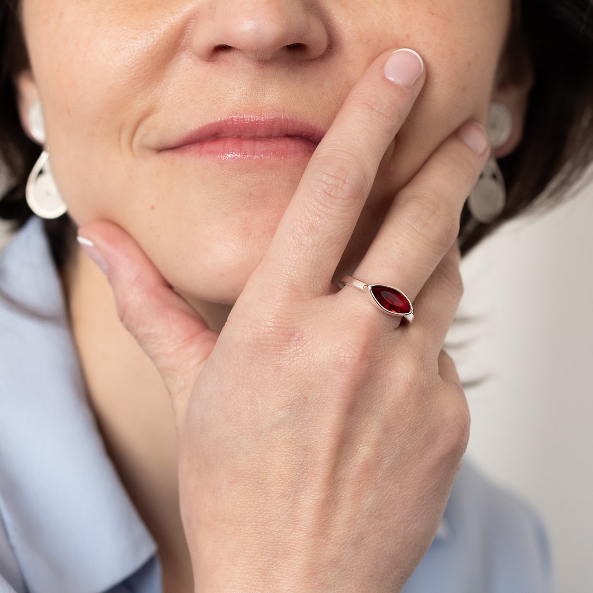 Anillo elaborado en plata 950, con engaste ovalado con cristal color a definir.