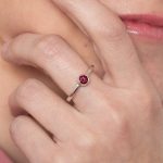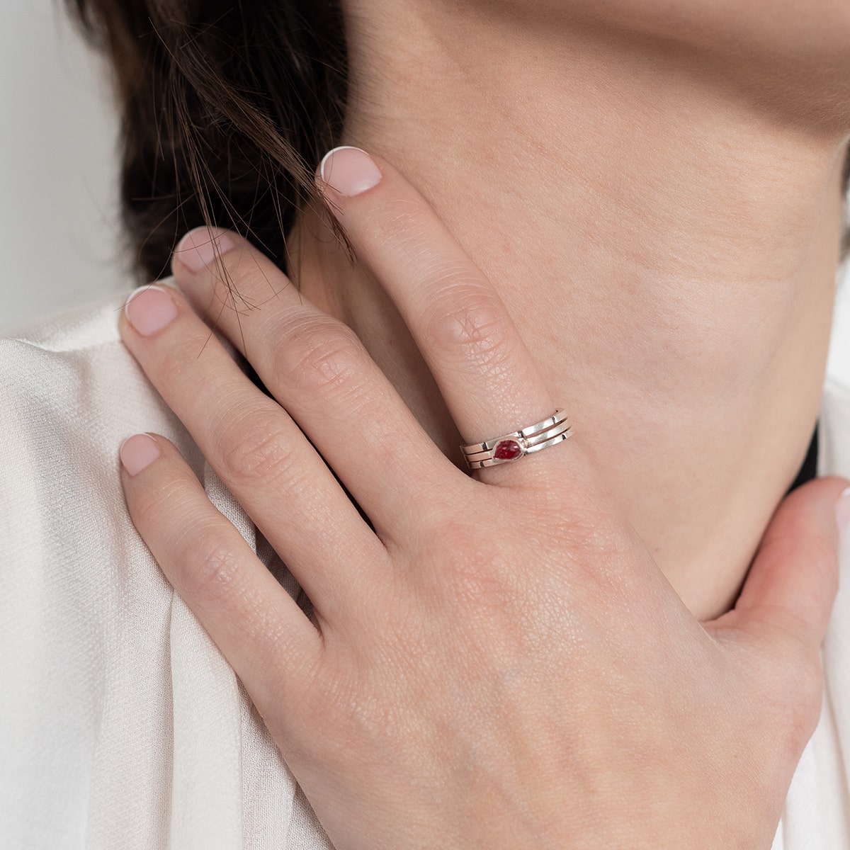 Anillo fino elaborado en plata 950, con una pequeña gota con mosaico en piedra roja.